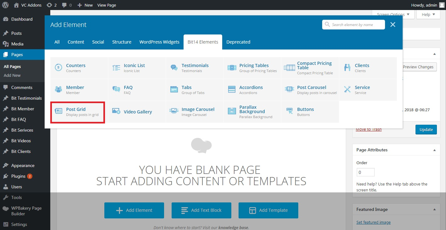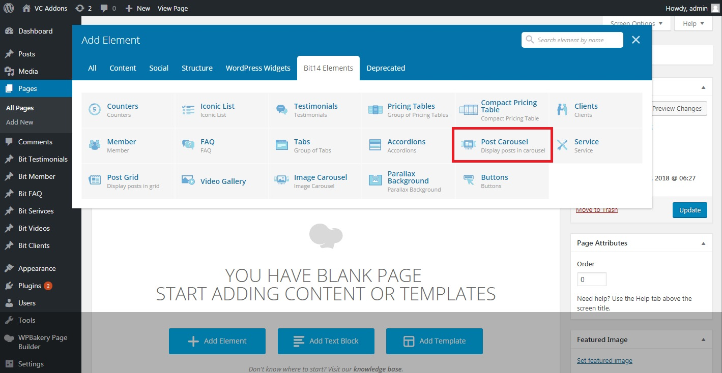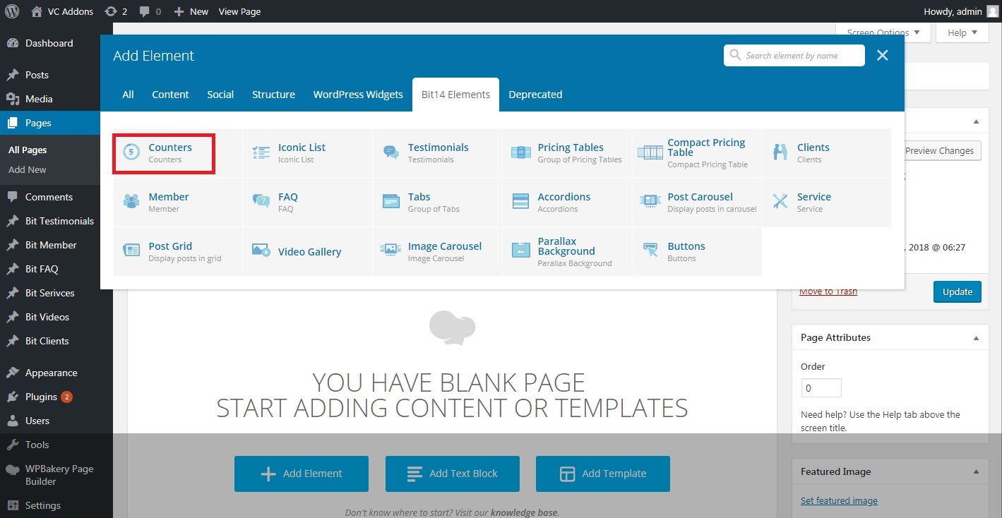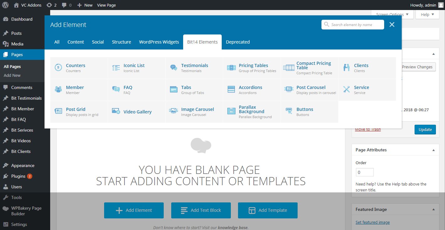 This documentation will help you to set up and use the Page Builder Addons for WPBakery. The Plugin is very easy to use and we are here to guide and help you, so please read and follow the documentation, if there are some other issues you want to discuss then do not hesitate to contact us on admin@bit14.com. This documentation is more of a reference work if you do not know what to do, or if you are not familiar to WordPress.