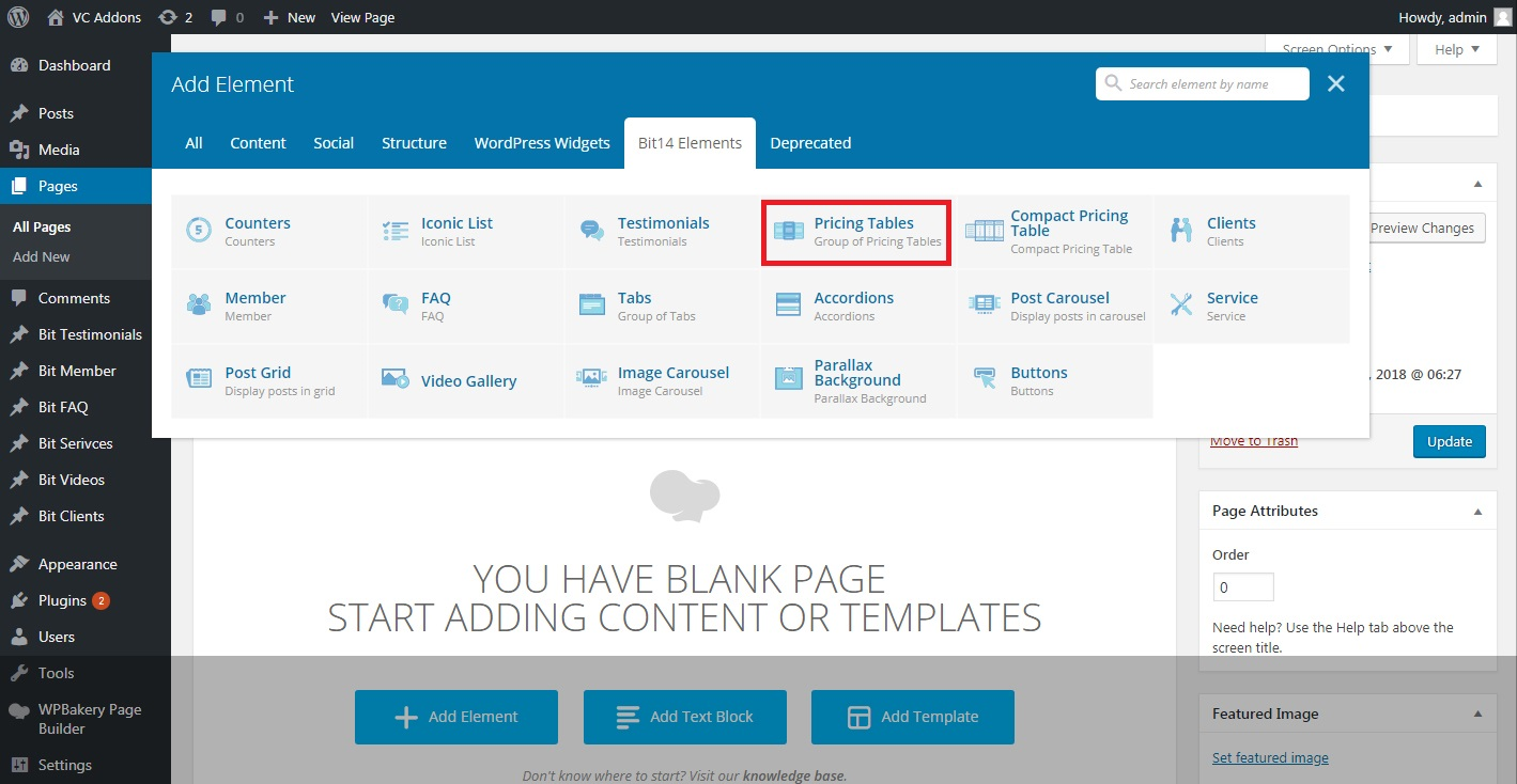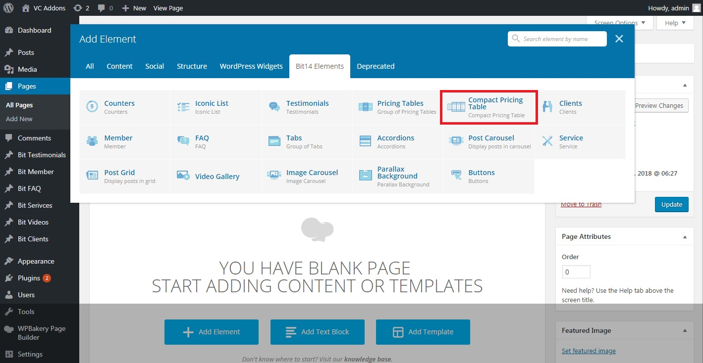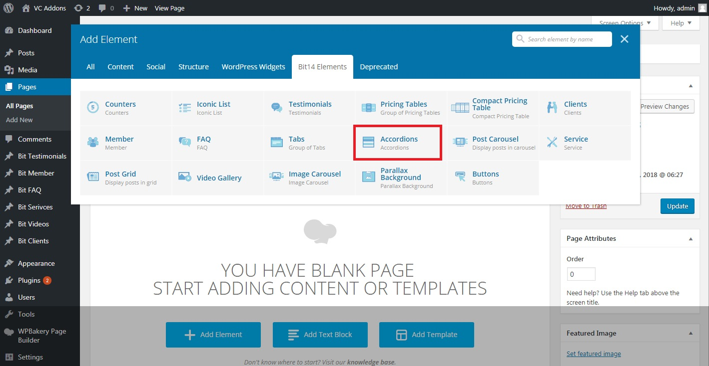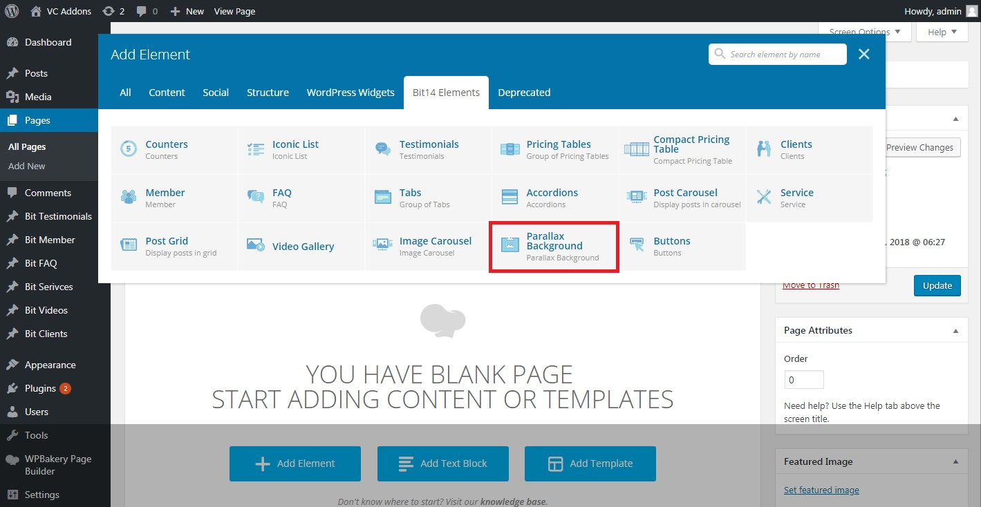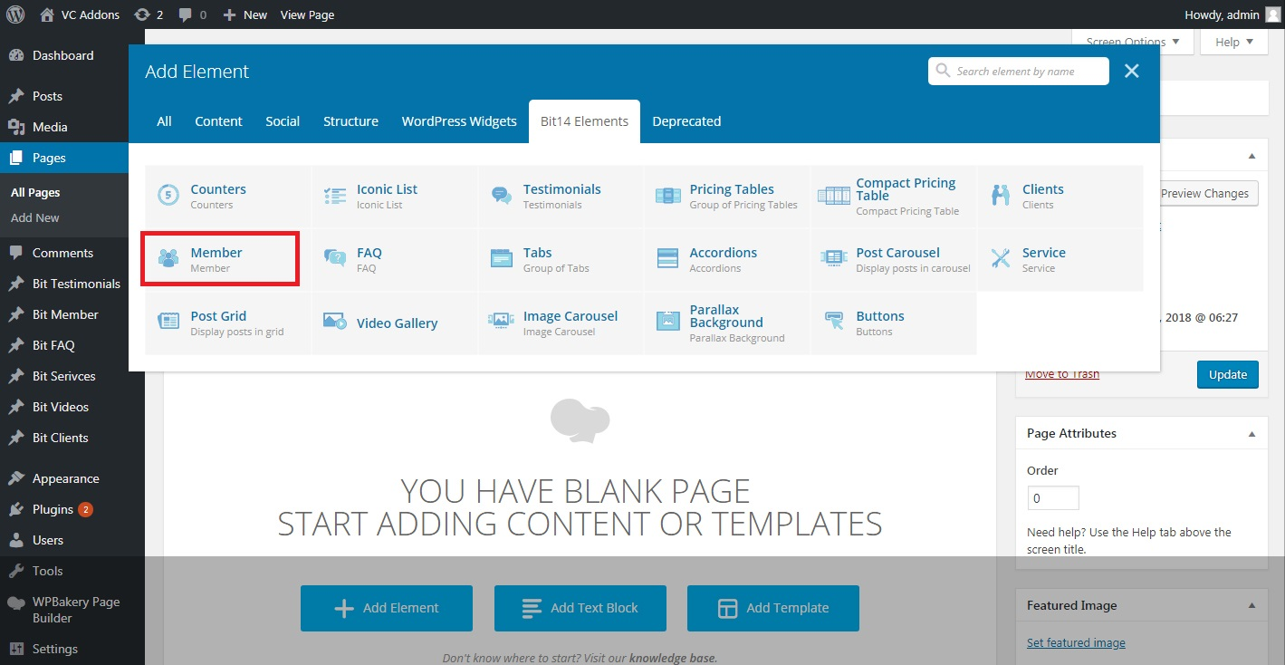 This documentation will help you to set up and use the Page Builder Addons for WPBakery. The Plugin is very easy to use and we are here to guide and help you, so please read and follow the documentation, if there are some other issues you want to discuss then do not hesitate to contact us on admin@bit14.com. This documentation is more of a reference work if you do not know what to do, or if you are not familiar to WordPress.
