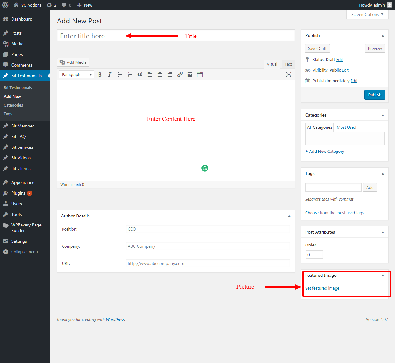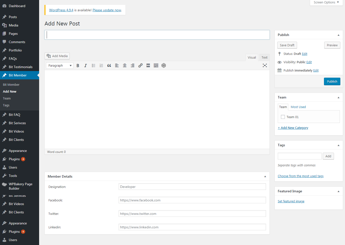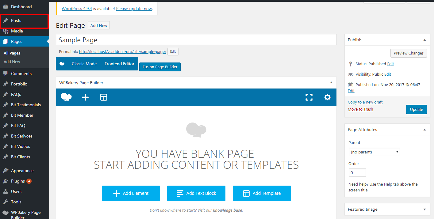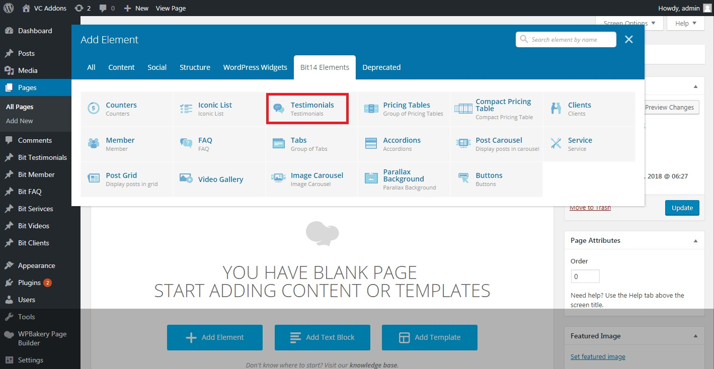This documentation will help you to set up and use the Page Builder Addons for WPBakery. The Plugin is very easy to use and we are here to guide and help you, so please read and follow the documentation, if there are some other issues you want to discuss then do not hesitate to contact us on admin@bit14.com. This documentation is more of a reference work if you do not know what to do, or if you are not familiar to WordPress.