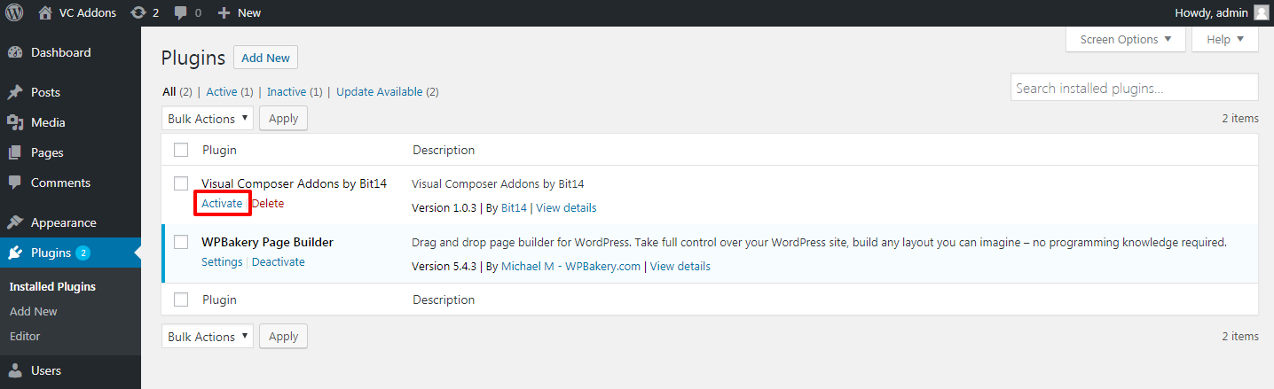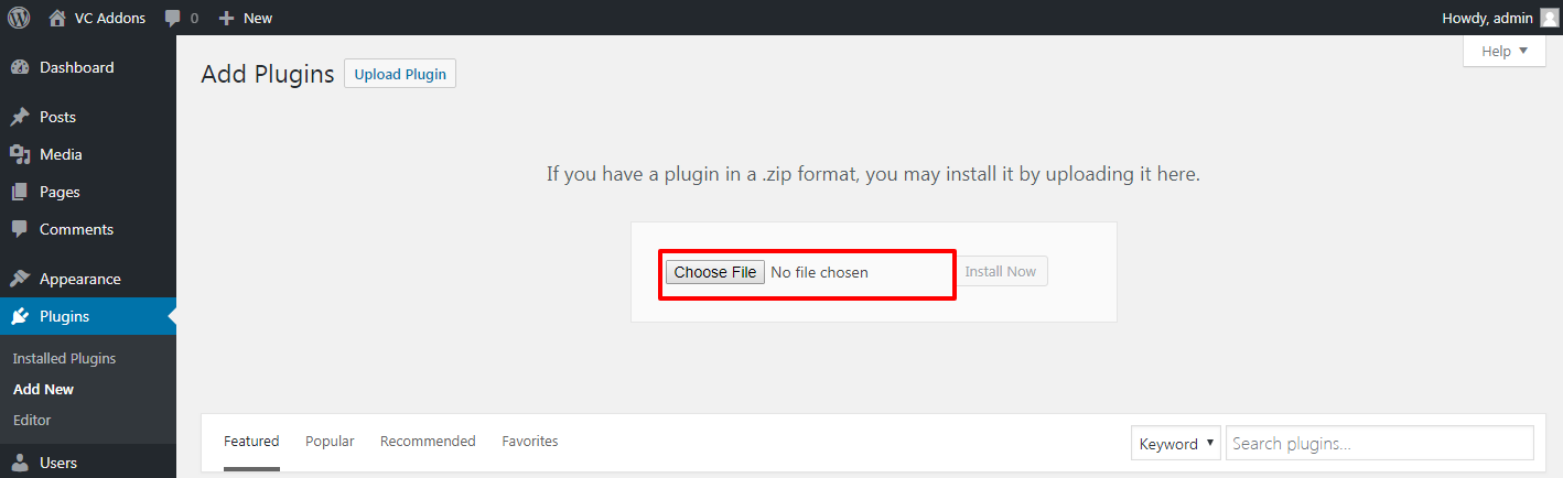 After installing WordPress, use a theme of your choice and add WpBakery Page Builder Plugin. After this we are ready to install Page Builder Addons. There are two methods to install WordPress plugin